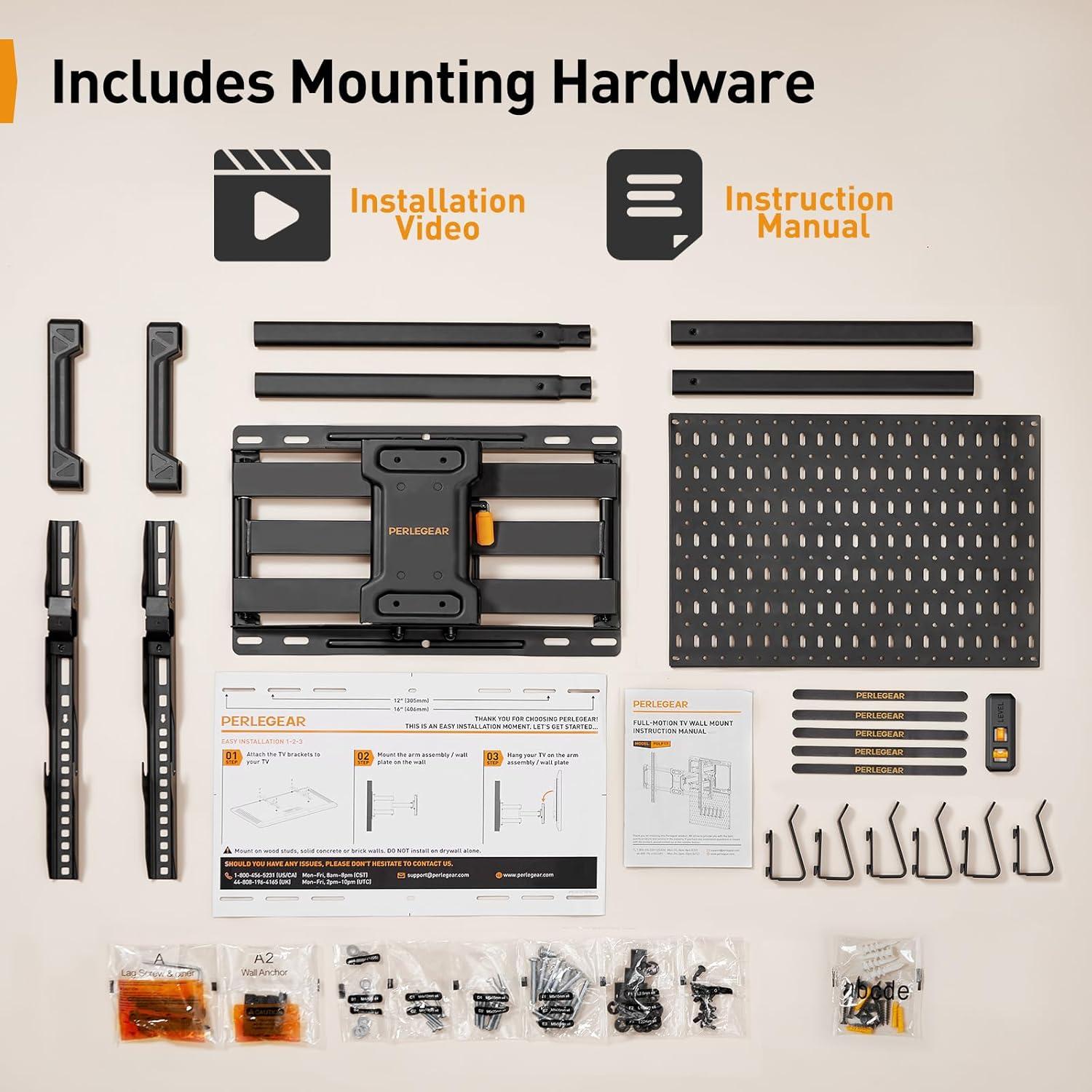 Be the first to review “PERLEGEAR Full Motion TV Mount with Metal Pegboard for Most 42-84 inch Flat or Curved TVs up to 132 lbs, TV Wall Mount with Swivel & Tool-Free Tilt, Max VESA 600x400mm, Fits 12″/16″ Wood Studs, PGLF17”