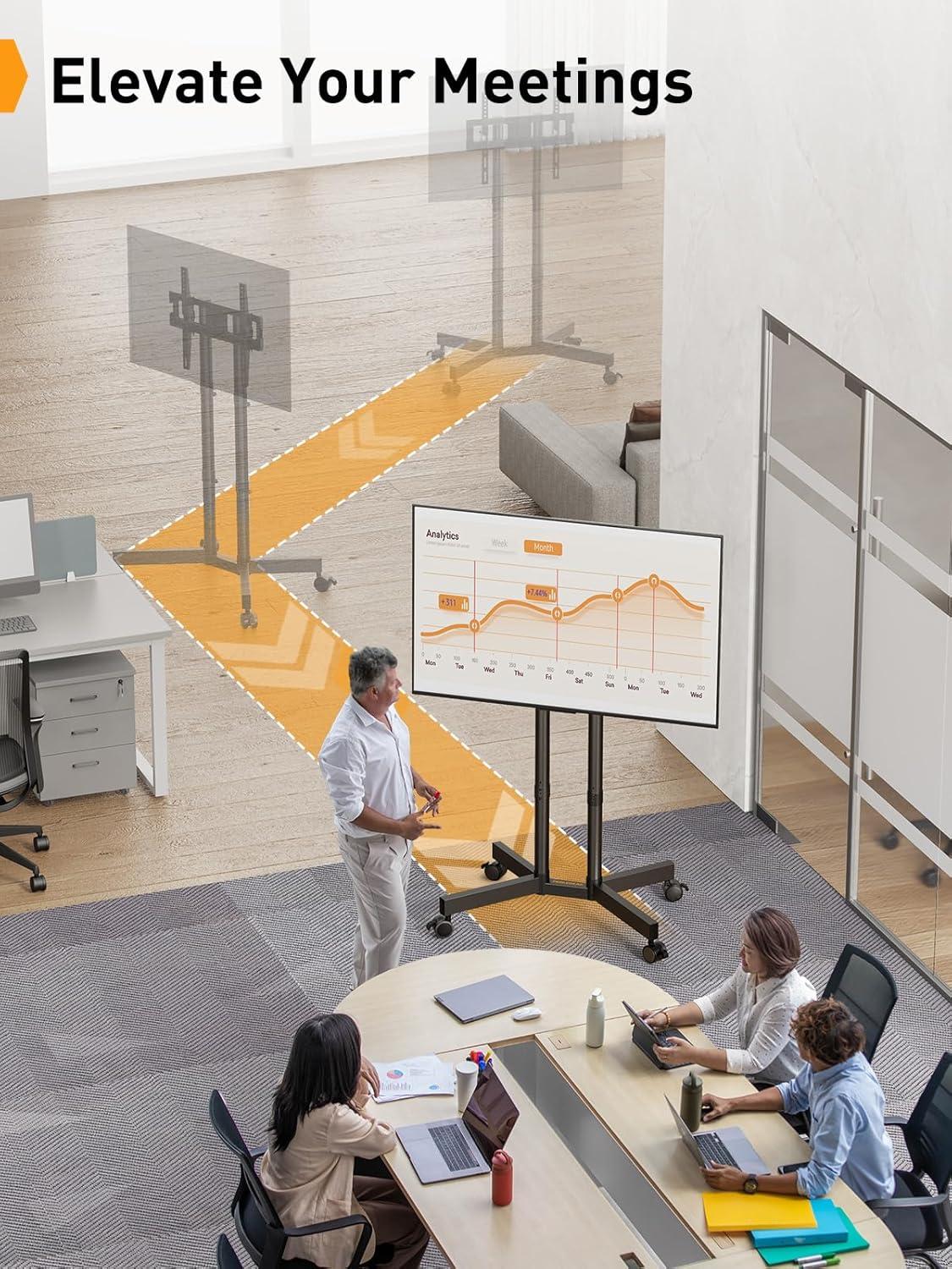 【Dual-Pole Structure Enhanced Stability】 Our TV cart features an upgraded dual-pole structure, providing 35% more stability, holding up to 88 lbs. The TV rolling stand also accommodates TVs that are 17% larger than standard options.Say goodbye to wobbling screens and hello to a cinematic experience like never before with our TV stand wheels.