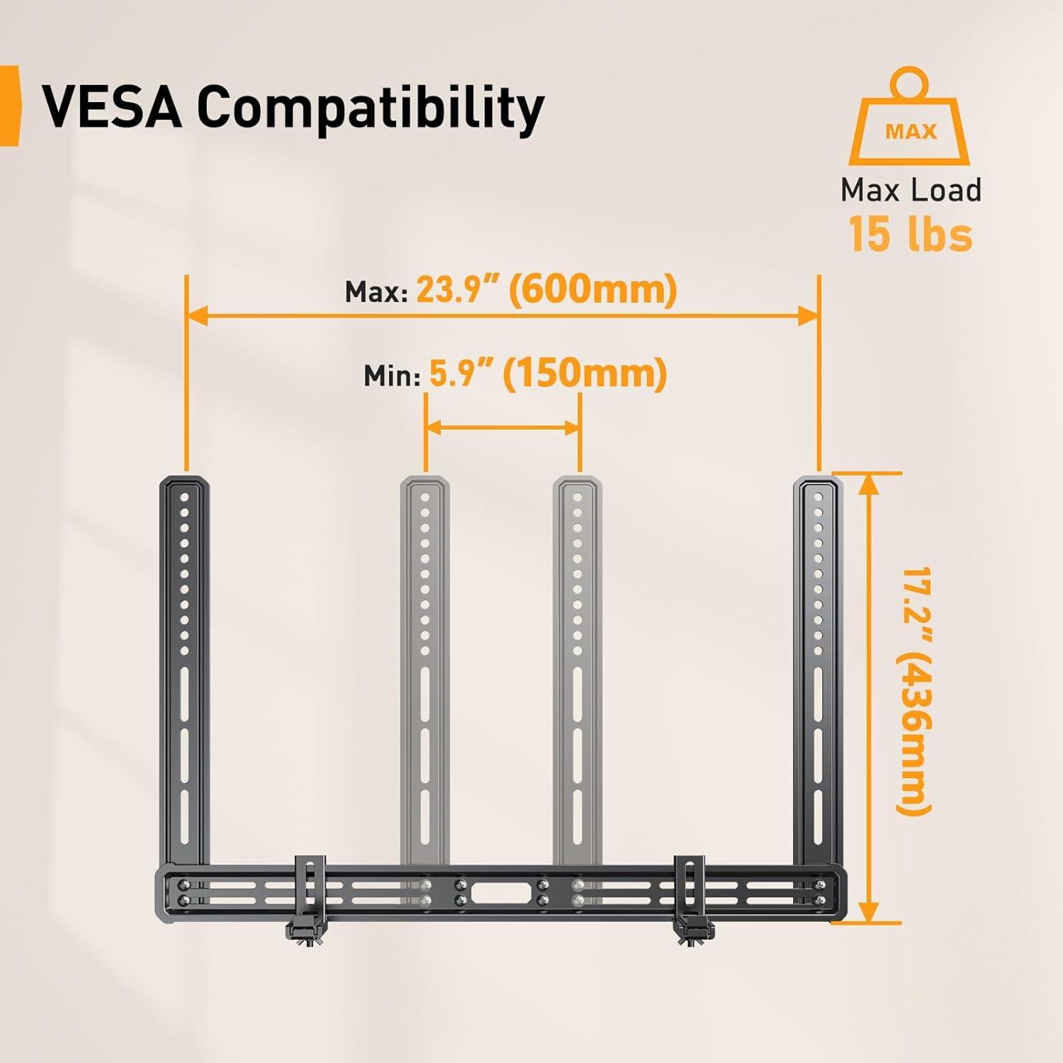 Flexible Holder: The adjustable base holder extends 6″ and retracts back to 3.5″ for fitting different widths of sound bars. The soundbar mount allows you to position your soundbar above or below your screen for optimal sound placement.