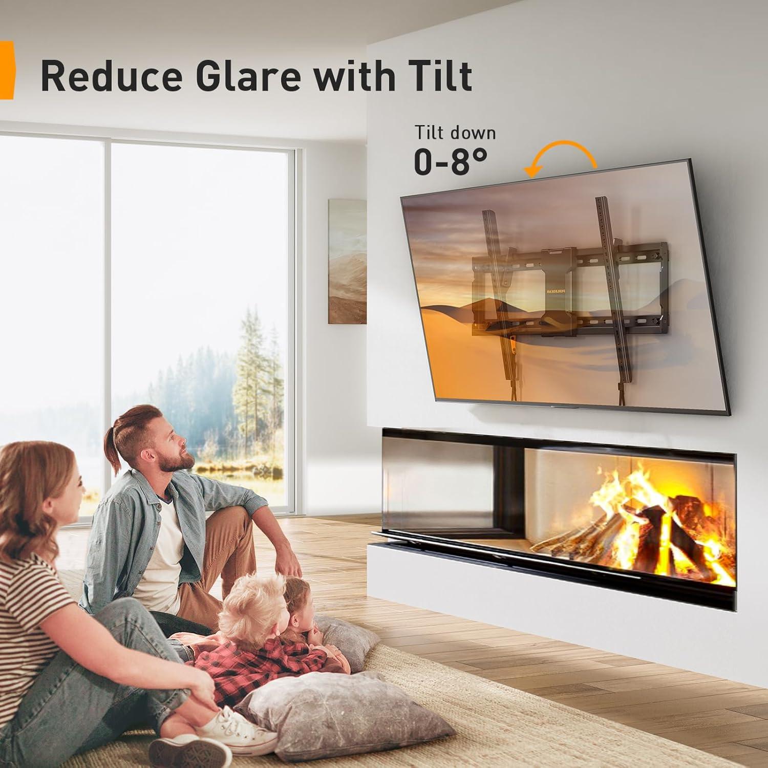 Less Screen Glare: By tilting your screen up to 8 degrees, this TV mount can help to reduce screen glare or reflections from windows and light sources. Enjoy the best viewing angle when watching TV from bed or the sofa.