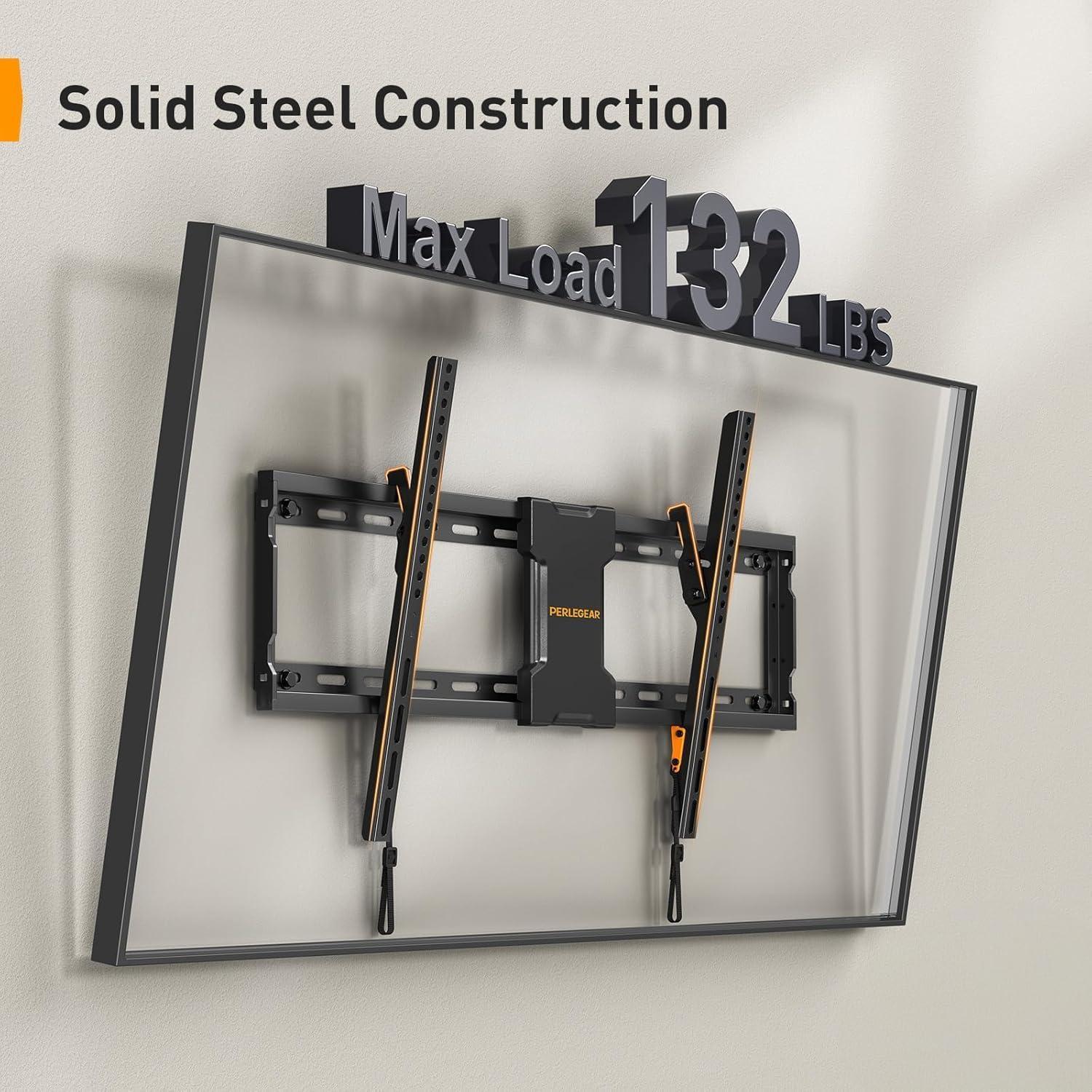Perlegear Tilting TV Wall Mount for Most 37-82 inch TVs up to 132 lbs, Low Profile Tilt TV Mount Wall Bracket for Flat or Curved TVs, Fits 24”/18”/16” Studs, Max VESA 600x400mm, PGLT2