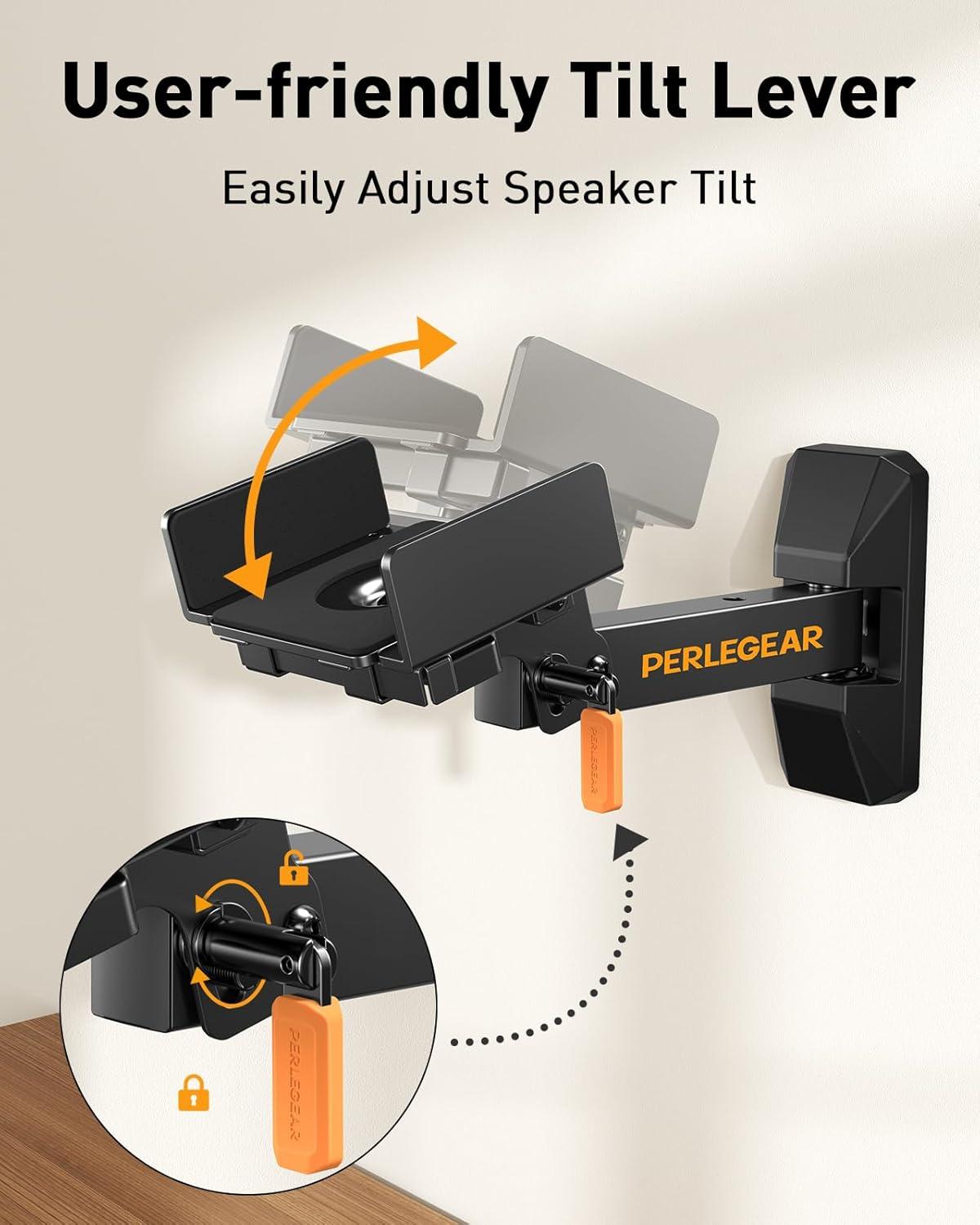 Easy Tilt Adjustment: Simplify your speaker setup with Perlegear’s speaker wall mount. Featuring an orange cushioned tilt knob, the speaker mount can be smoothly adjusted 10° upward or downward to fine tune the direction of audio in your room.