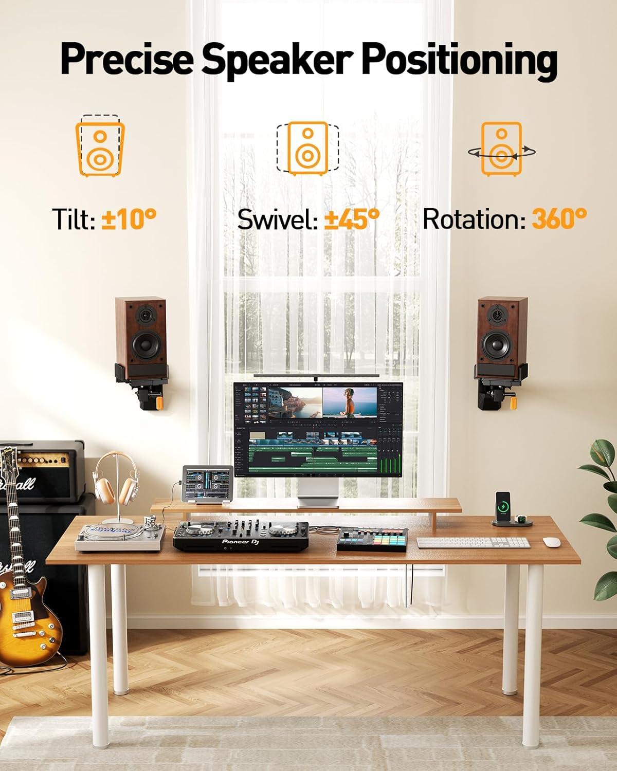 Precise Audio Alignment: Perfect your home sound stage with our speaker wall mount’s +/-45° swivel and 360° rotation for an optimal listening experience from any angle.